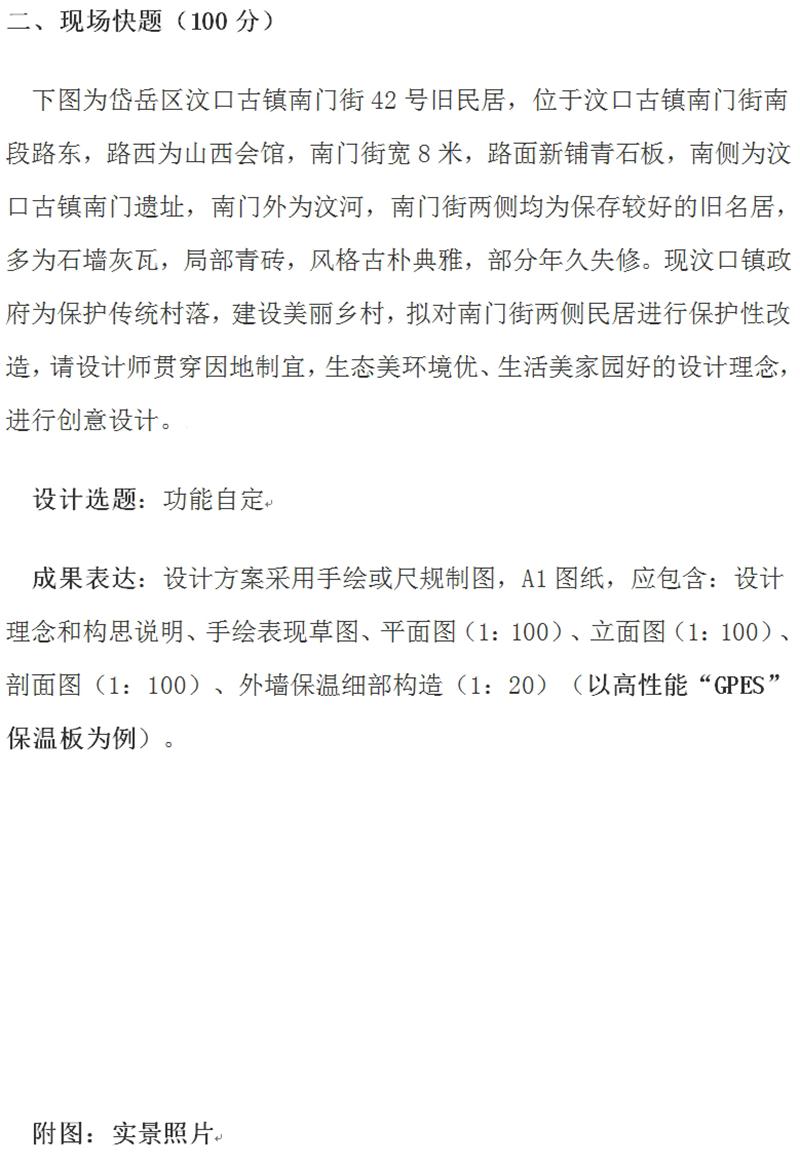 現(xiàn)場快題:建筑創(chuàng)意設(shè)計(jì)技能競賽考試題